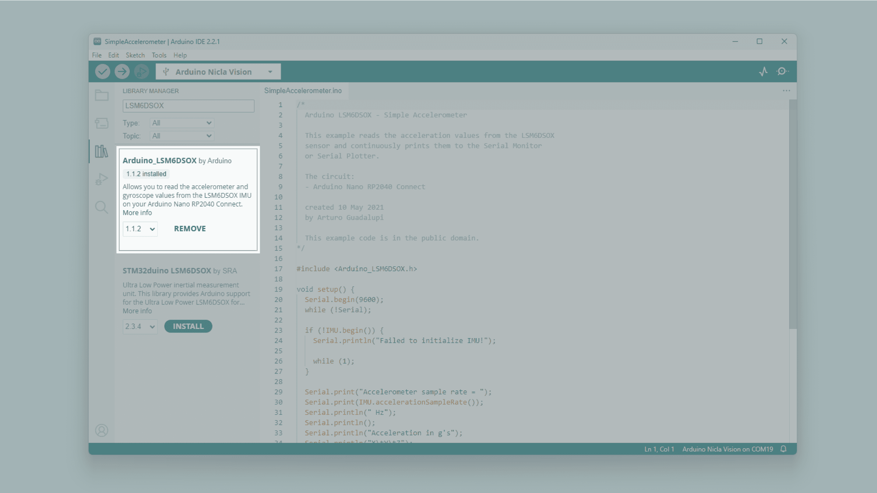 Nicla Vision and install the latest Arduino Mbed OS Nicla Boards version.